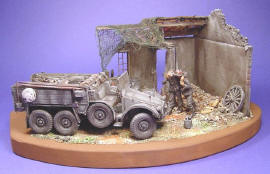 The Krupp boxer is an old Tamiya kit with a multitude of supplies in the cargo area.The figures are from Dragon and the building is from Heller.