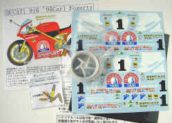 I recently found out that the japanese firm Museum Collection has made a conversion-set to turn the production machine into the 'works' Ducati Corse version of 'King' Carl Fogarty or 'Foggy' as nicknamed by his numerous fans across the world of Superbike racing! After surfing one day on the Net and typing Ducati 916 at the Google search engine, I saw a link of that excellent online modelshop, HobbyLinkJapan. I knew about the Museum-collection conversion-sets to turn a standard 916 into the Superbike racing version. I choose to go for the 1995 livery since it has the No.#1 and 'Kremlyovskaya wodka' as a main sponsor and I have a Dutch motormagazine with an insight article with helpful detailphoto's on that specific model.