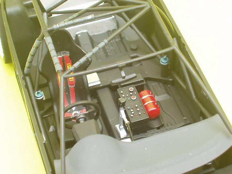 After removing all mould marks, I glued together those parts which should be painted in the same color, for example, the chassis and the fuel tank or the antiroll cage.