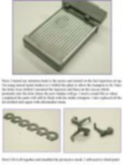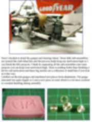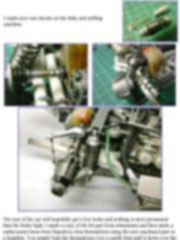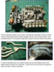 The first thing I always do before starting a super detailed build is read through the instructions over and over to work out where I need to add detail. I highlight the machined, Photo-etched or just extra scratch built details in a fluorescent marker for easier reference when I reach that stage of the build. You can imagine that these instructions were quite colourful when I finished. Another target I set myself during my work is to try to blend the metal and plastic parts. I do this by painting some of the parts I turn and heavy use of the Alclad range of paints on the plastic parts. Ideally I don’t want the finished model to look like a plastic kit with metal parts added to it. This note is offered in PDF format to be read or printed using Acrobat reader, contact our webmaster > Here Includes more than 118 pics, here we show only the text pages.